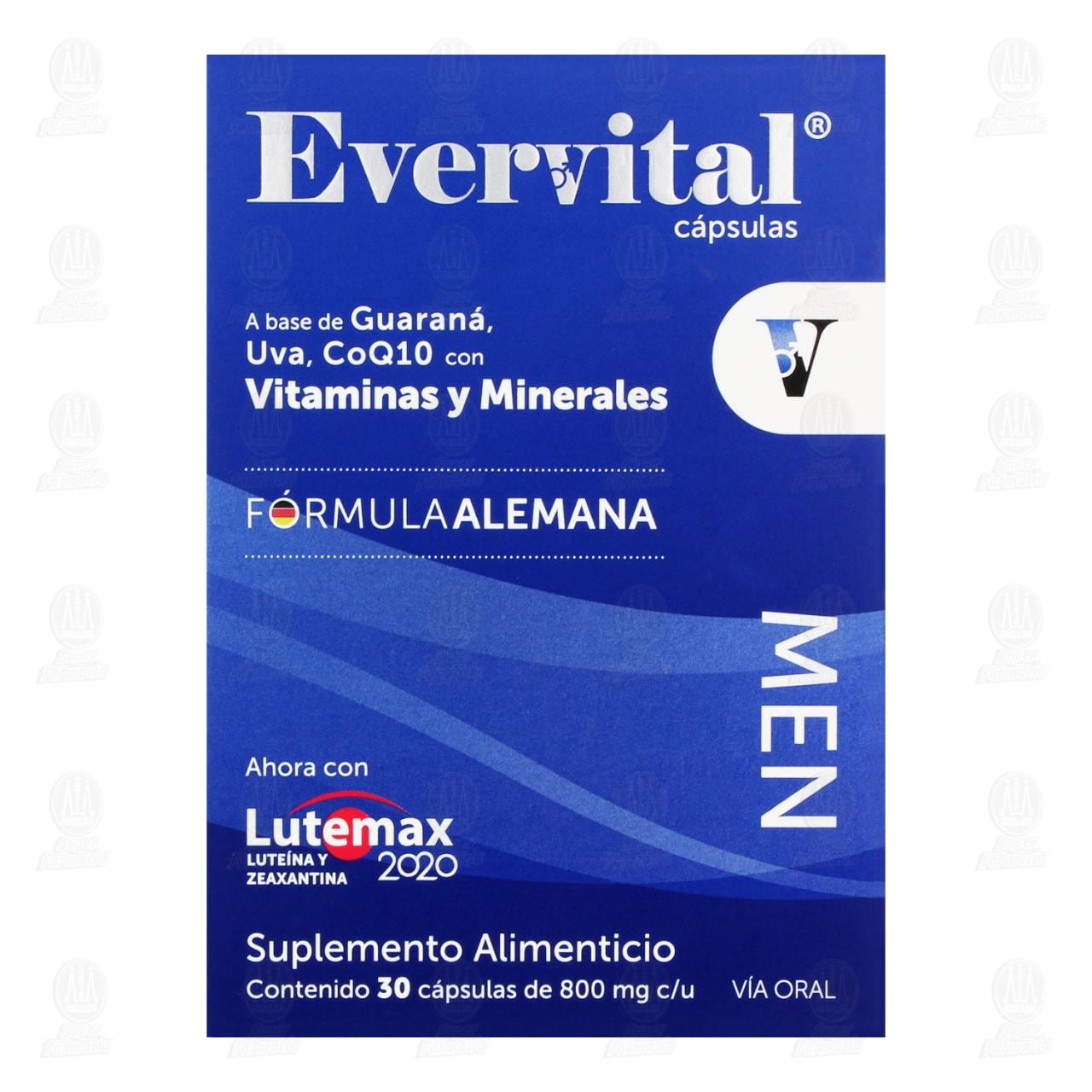 Evervital Men, 30 Cápsulas (Guaraná, Uva, CoQ10, Vitaminas, Minerales)