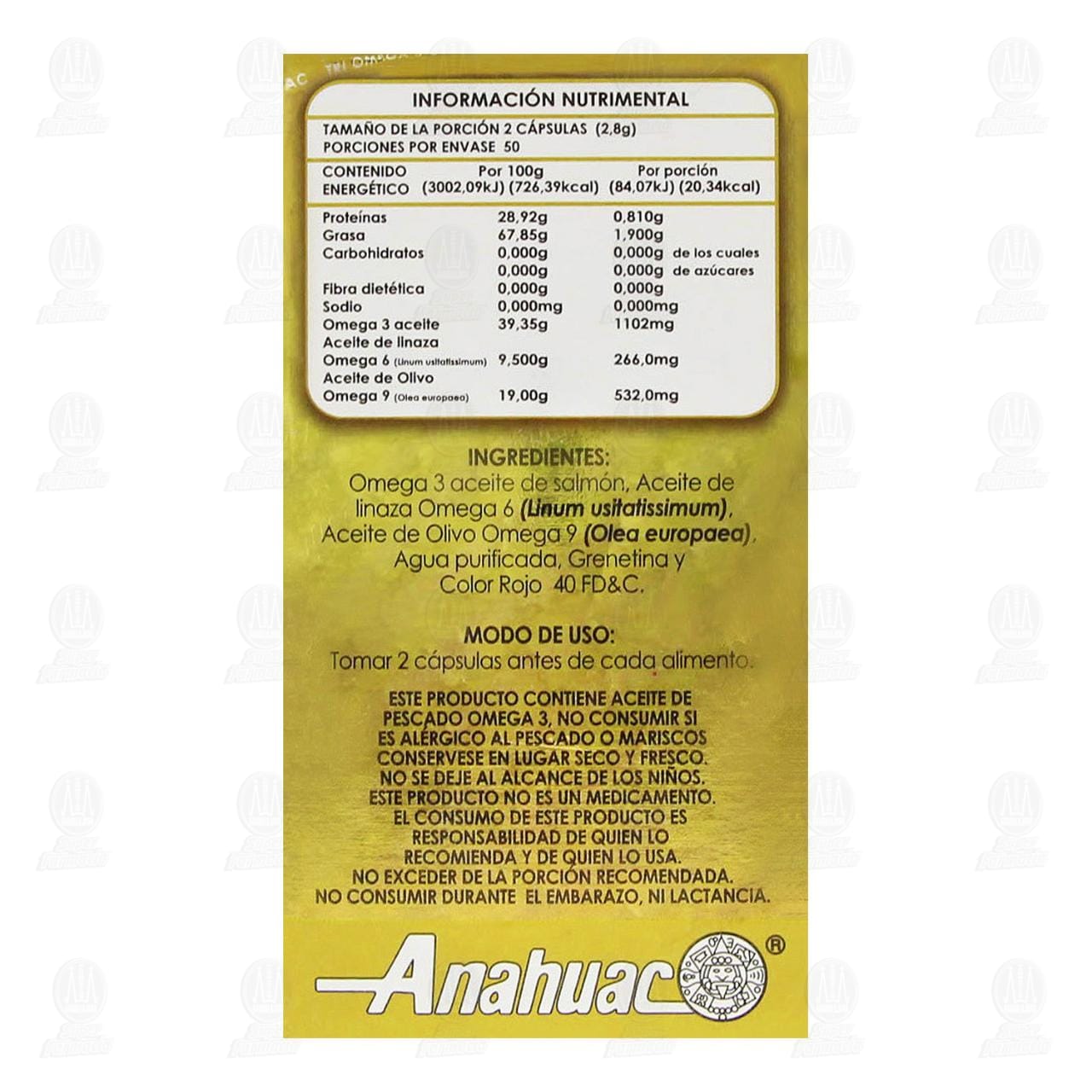 Triomega 3, 6 y 9 Suplemento Alimenticio, Contiene 100 Cápsulas de 1.4 gramos cada una.