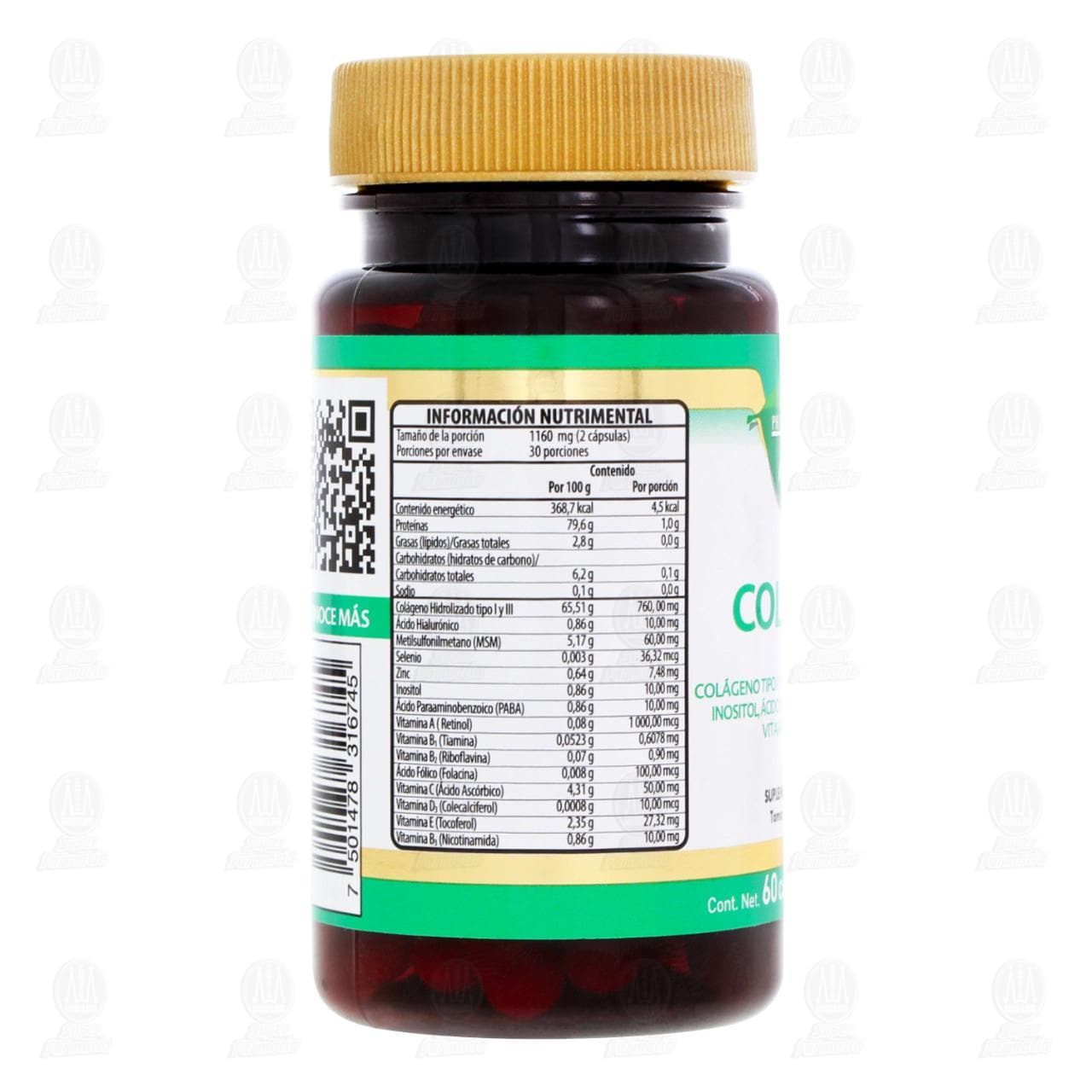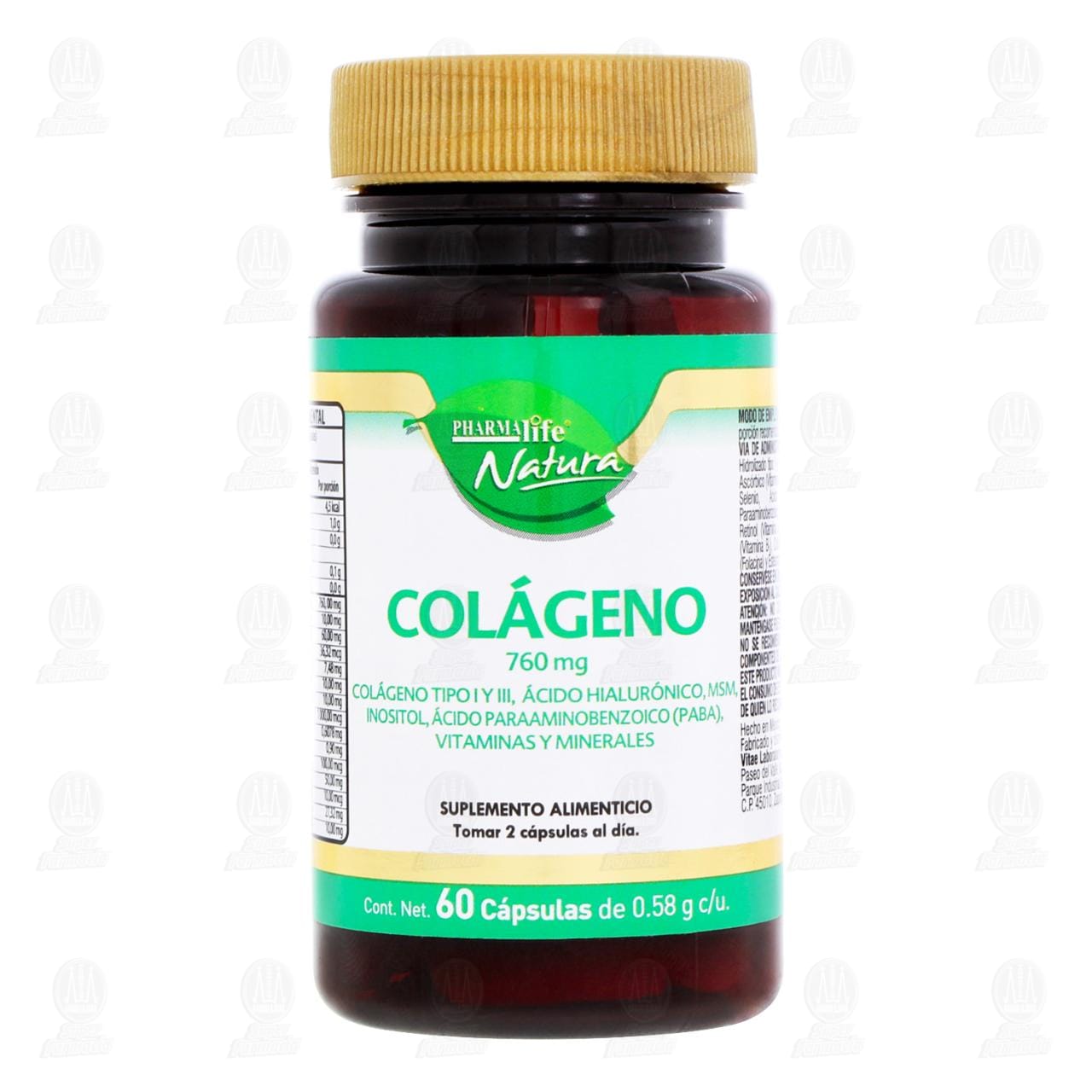 Colágeno 760 miligramos, 60 Cápsulas Pharmalife Natura (Colágeno tipo I y III, Ácido hialurónico, MSM, Inositol, Ácido para aminobenzoico (PABA), Vitaminas y Minerales)