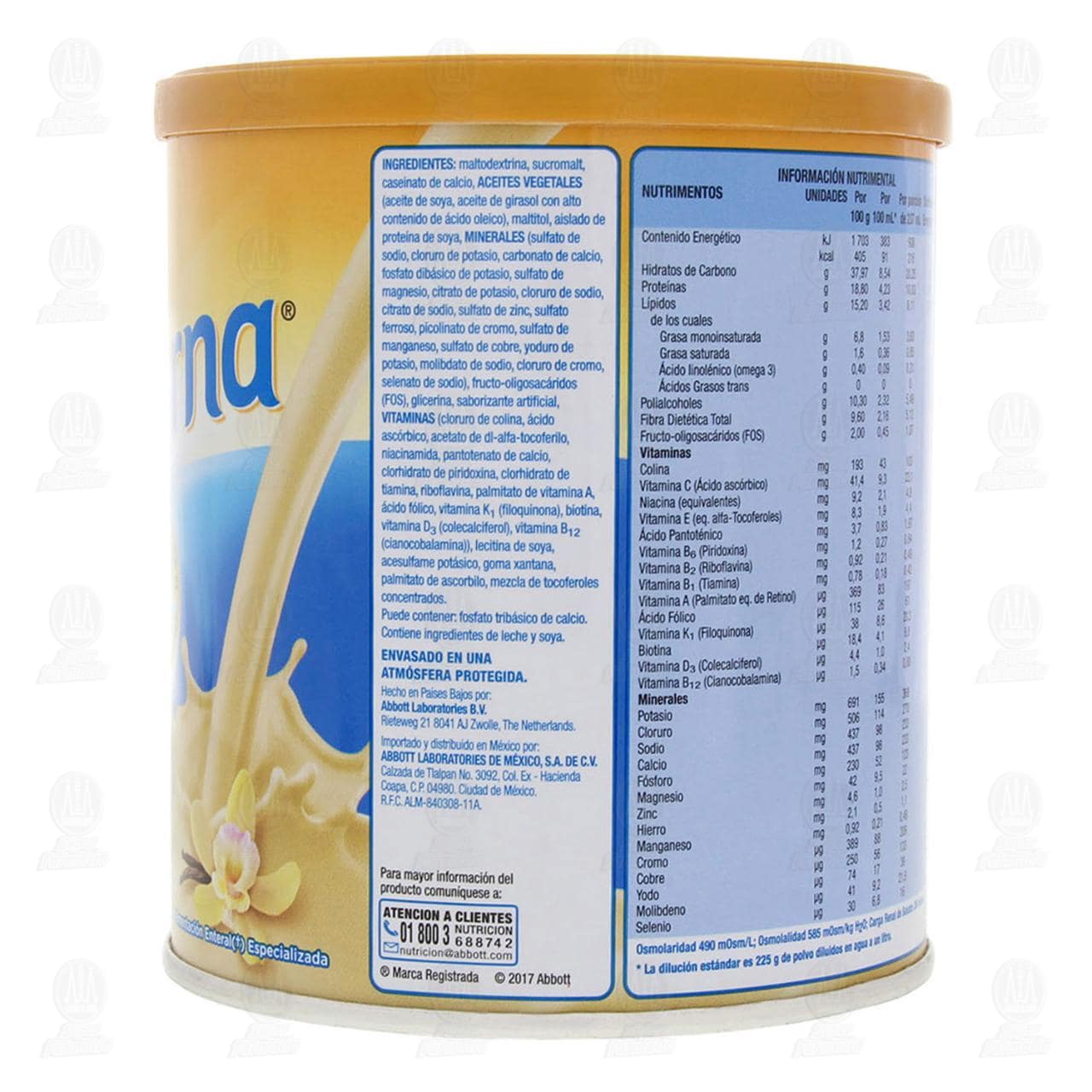 Agua, maltodextrina, concentrado de proteína de leche, sucromalt, glicerina, concentrado de proteína de soya, aceite de cártamo con alto contenido de ácido oleico, aceite de canola, aceite de soya fructooligocáridos de cadena corta, saborizantes naturales y artificiales, ésteres de esterol vegetal, fosfato dibásico de magnesio, cicrato de potasio, citrato de sodio, lecitina de soya, cloruro de potasio, fosfato de calcio. Cloruro de colina, cloruro de sodio, ácido ascórbico, cloruro de magnesio, carragenina, ecesulfame potásico, curcumina, sulfato ferroso, acetato de d-a-tocoferilo, sulfato de zinc, sucralosa, niacinamida, pantotenato de calcio, picolinato de cromo, sulfato de magnesio, sulfato cúprico, palmitato de vitamina A, clorhidrato de piridoxina, clorhidrato de tiamina, riboflavina, ácido fólico, biotina, molibdato de sodio, yoduro de potasio, selenato de sodio, filoquinona, cianocobalamina, vitamina D3.