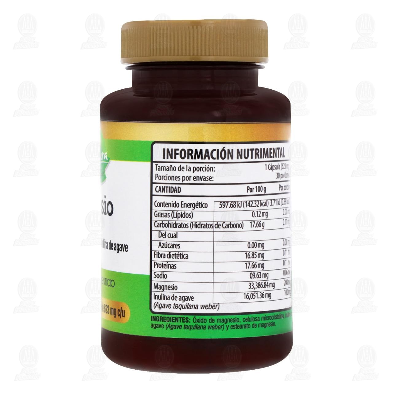 Magnesio 623 mg, 30 Cápsulas Pharmalife Natura. (Magnesio, Inulina de Agave)