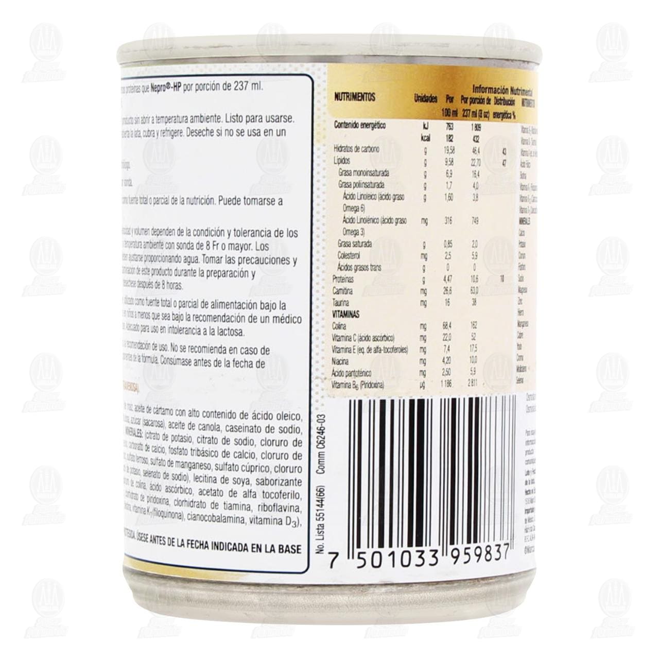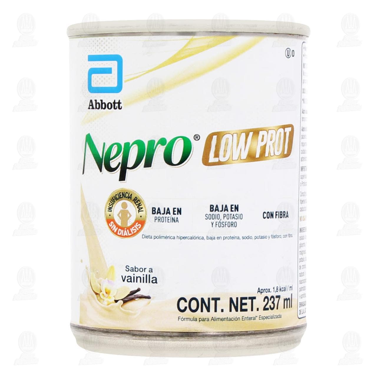 Fórmula especializada Nepro Low Prot para alimentación enteral, dieta polimérica, hipercalórica, baja en proteína, sodio, potasio y fósforo, con fibra, sabor a vainilla. Lata con 237 mililitros.