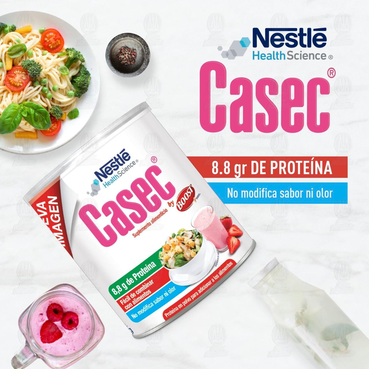 Suplemento Alimenticio Casec by Boost Nestlé es una proteína en polvo fácil de combinar con alimentos. Contiene 8.6 gramos de proteínas. Lata con 300 gramos.